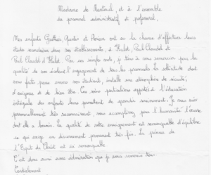 Vous ne vous en souvenez peut-être pas mais nous nous étions rencontrés début juillet il y a 2 ans dans votre bureau, vous aviez repéché in extremis T. pour sa demande d’inscription en 4è suite au désistement d’un élève.