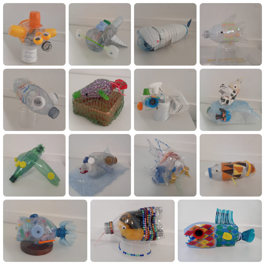 Les élèves de madame Bernard ont été très inspirés par les consignes de leur professeur en arts plastiques. Voici quelques réalisations de qualité. 6e « Espèce de poisson plastique » Consigne: votre poisson (réel ou inventé) est un grand mangeur de plastique. Créez votre espèce marine en trois dimensions. Matériaux: Utilisez uniquement des matériaux en plastique de récupération […]